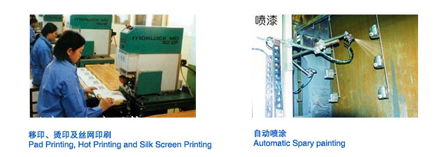 For capacity of manufacturing and processing, the company introduced injection molding machines of Battenfeld ,Kraussmaffei, Engel, painting equipments of Haden and fully automatic and high precision printers of Morlock from Europe. Now the company has the capability of production with injection volumes ranging from 25g to 4000g,and clamping forces from 25T to 650T,and also is able to gain double-process in double-color injection molding, pad printing , hot printing, and paint-spraying.